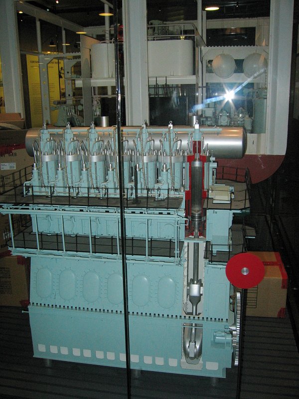 Beeindruckend waren die sehr detailreichen, im verkleinerten Maßstab nachgebildeten Motoren. Man fand hier fast alle jemals bei B&W gebauten Dieselmotoren. Dabei waren aus heutiger technischer Sicht Kuriositäten wie Gegenkolbenmotor, doppelt wirkender Motor und Motoren mit Spülluftpumpen vorhanden. Jeder Modellmotor rotierte per Knopfdruck und in einem aufgeschnittenen Zylinder konnte man sogar die Vorgänge im Zylinder mit nachgebildeter Zündung verfolgen. An einigen Motoren ging eine große Diskussion los, wie denn nun dieser Motor funktionierte, wobei Detailfragen nicht bis ins letzte geklärt werden konnten.