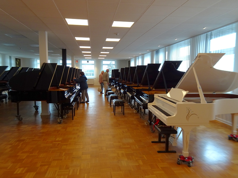Im Verkaufshaus, Rondenbarg 15, auf der gegenüberliegenden Straßenseite, konnten wir die verkaufsfertigen Flügel sehen, alle in bester Qualität. Zweite Wahl gibt es nicht. Steinway & Sons ist ein Qualitätsbegriff weltweit.