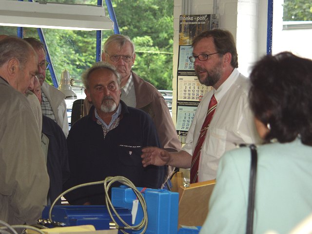 Die Herren Paschen, Ruflair und Dr. Zeides führten uns durch die Produktionsräume und erläuterten uns an den einzelnen Arbeitsbereichen die Montage und Prüfung der Geräte und Anlagen.